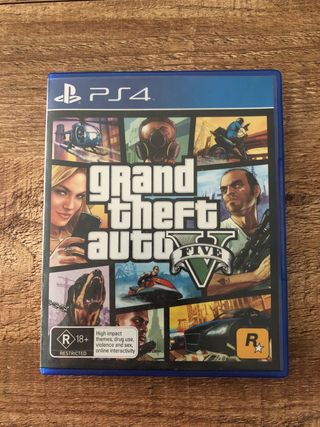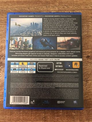Edición Premium del popular videojuego Grand Theft Auto V para PlayStation 4. - Juego en formato físico. - Caja y disco en buen estado.