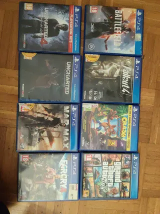 Lote de videojuegos para PlayStation 4.se venden sueltos preguntar por precio unitario - Uncharted 4: El Desenlace del Ladrón - Uncharted: El Legado Perdido - Battlefield 1 - Fallout 4 - Mad Max - Crash Bandicoot N. Sane Trilogy - Far Cry 4 - Grand Theft Auto V