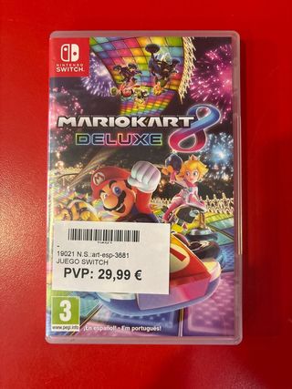 Juego Mario Kart 8 Deluxe para Nintendo Switch. Incluye la caja original. - Carátula con diseño vibrante. - Clasificación PEGI 3. - Textos en español y portugués.