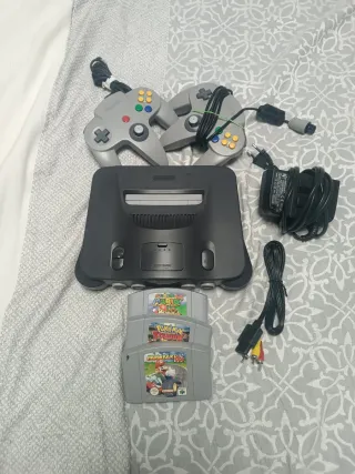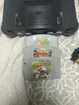 Consola N64 + Mando original + Cableado. 🎮Juegos premium en un mismo anuncio: 🏁Mario Kart 64, 🍄 Super Mario 64, 💥Pokémon Stadium, 🤛 Super Smash Bros. ✅Algunas pequeñas marcas de uso. ✅Consola Funcional y probada. ⚒️Se envía lo más limpia posible ⚠️ Amplia selección de juegos y accesorios para N64. Pregunta sin compromiso. 🎮 Solo N64, para auténticos fanáticos. 🚀 Envío rápido y seguro | Trato profesional y de confianza. 📦 Opción de packs a medida. ✅ Vendedor de 5 estrellas | Respuestas rápidas y atención personalizada.