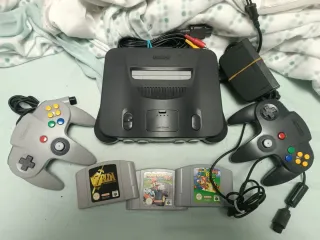 Consola N64 + Mando original + Cableado. Consola con juegos premium: 🍄⭐Super Mario 64, 🏁🚗Mario Kart 64 y 💥Zelda Ocarina Of time ✅💥Consola y mando en muy buen estado (prácticamente sin marcas de uso, oxido) 🟢Joystick funcionales ✅Consola Funcional y probada. ⚒️Se envía lo más limpia posible ⚠️ Amplia selección de juegos y accesorios para N64. Pregunta sin compromiso. 🎮 Solo N64, para auténticos fanáticos. 🚀 Envío rápido y seguro | Trato profesional y de confianza. 📦 Opción de packs a medida. ✅ Vendedor de 5 estrellas | Respuestas rápidas y atención personalizada.