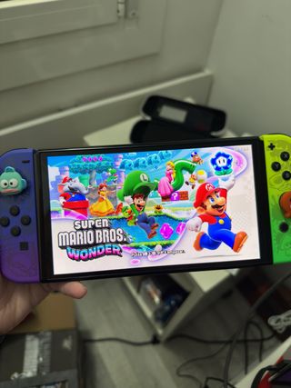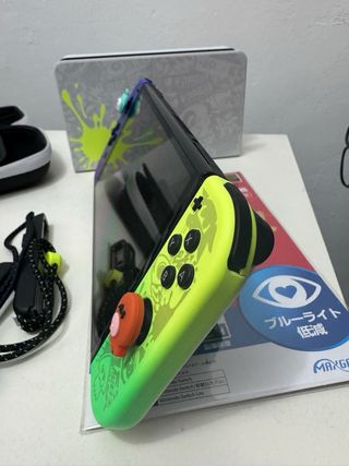Consola Nintendo Switch OLED edición especial Splatoon. Apenas se ha usado. Es de Japón. Todo está en español, tanto juegos como la consola, solo que el packaging es japonés. El cargador trae el adaptador. (Ver fotos) Pack especial con: - Consola - Protector de pantalla - Funda Consola - Cajita azul para guardar juegos - Mario Wonder - Splatoon 2 - Mario Kart 8 - Pokémon Escarlata - Ring Fit (con el aro) - Fifa 20