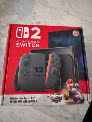 Consola Nintendo Switch 2 con el juego Mario Kart World, incluye adaptador enchufe europeo. NUEVA sin abrir, Precio NO negociable. - Incluye mandos. - Diseño en negro y rojo.