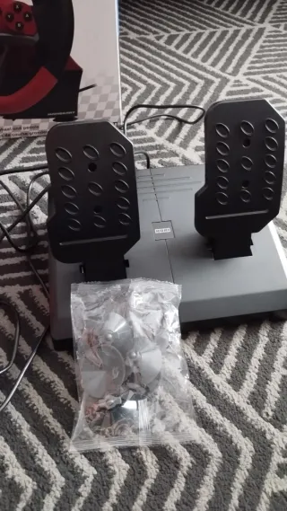 Volante de carreras para Nintendo Switch, inspirado en Mario Kart. Incluye pedales. - Diseño ergonómico en rojo y negro. - Botones de control integrados en el volante. - Base para los pedales.