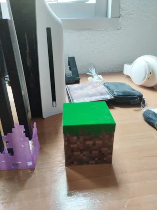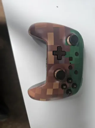 Mando de Nintendo con un diseño inspirado en Minecraft, en tonos marrón y verde. - Diseño temático de Minecraft. - Color marrón con detalles en verde.