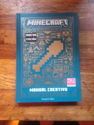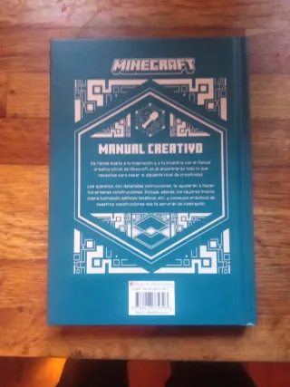Libro Manual Creativo de Minecraft, edición en español. - Cubierta con diseño pixelado. - Incluye el logo de Mojang Studios.