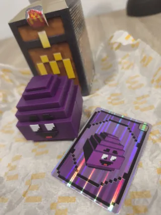 Figura de Minecraft de McDonald's, con su carta sin usar. - Figura Grimace x Minecraft - Carta de Minecraft.