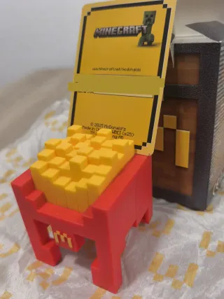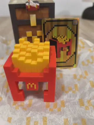 Figura de Minecraft de McDonald's con su carta. - Carta sin usar. - Figura Casco de Patatas Fritas x Minecraft