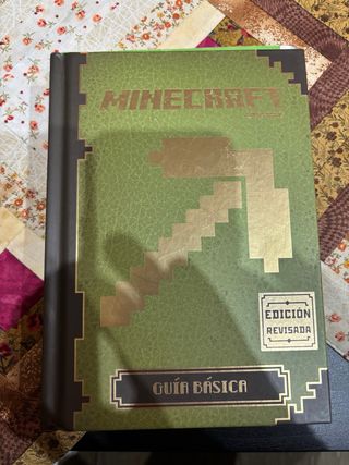 Libro de Minecraft, Guía Básica en su edición revisada. - Portada verde con detalles dorados. - Ilustración de pico de diamante. - Texto en español.