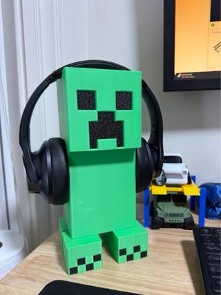 Soporte para auriculares con diseño de Creeper de Minecraft. Ideal para organizar tu espacio. - Color verde característico. - Diseño pixelado inspirado en el juego.
