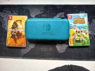 Consola Nintendo Switch Lite en color azul y verde. Incluye funda protectora y dos juegos con carcasa y uno sin carcasa - Funda de transporte. ⚠️AVISO SIN CARGADOR ⚠️ - Juegos: Animal Crossing, Mortal Kombat ll y Minecraft si Carcasa