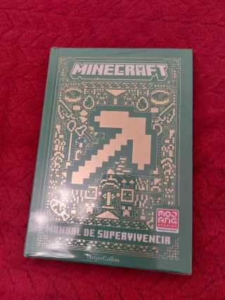 Manual de supervivencia oficial de Minecraft. - Cubierta verde con diseño dorado. - Incluye el logo de Mojang Studios. - Publicado por HarperCollins.