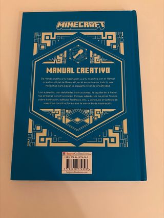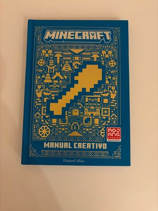 Manual creativo de Minecraft publicado por HarperCollins. - Portada azul con diseño dorado. - Incluye el logo de Mojang Studios.