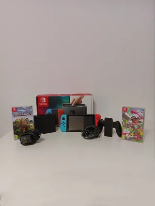 Nintendo Switch completa roja y negra como nueva con Minecraft y Splatoon 2. ✅ Está en perfecto estado tal y como se ve en las fotos ✅ Viene con Joy-Cons, Dock, Grip, Cargador, HDMI y su caja ✅ Trae los dos juegos de regalo con sus cartuchos