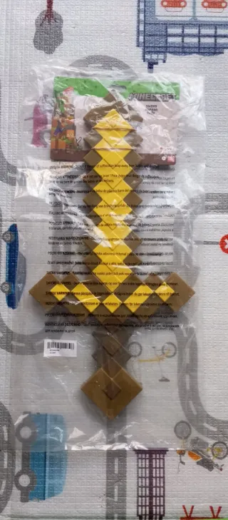 Espada de juguete inspirada en el popular videojuego Minecraft. Su diseño pixelado la hace única. -se enciende. - Colores vibrantes: azul, verde, rojo y blanco. - Diseño con rombos y cuadrados. - Ideal para coleccionistas o disfraces.