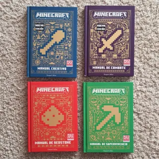 Pack de cuatro manuales de Minecraft en español. Incluye los títulos: - Manual Creativo - Manual de Combate - Manual de Redstone - Manual de Supervivencia Muy bien cuidados, sin ningún tipo de marcas ni anotaciones.