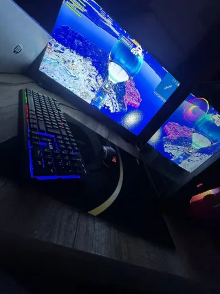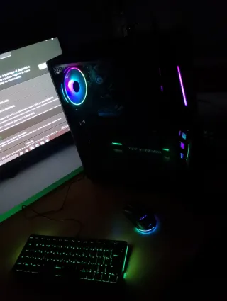 Equipo de PC gaming listo para usar. - Teclado retroiluminado con luces LED azules. - Ratón gaming con diseño ergonómico. - Alfombrilla de gran tamaño con detalles dorados. -pc gaming perfecto para jugar juegos como Roblox Minecraft GTA y hasta fortnite a más de 200 FPS ES NEGOCIABLE