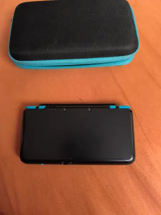 Consola portátil Nintendo New 3DS XL en color negro y azul. Incluye funda protectora. - Pantalla superior e inferior. - Botones de control.
