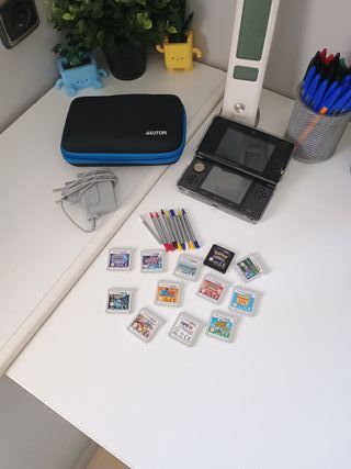 Consola portátil Nintendo 3DS en color negra, muy buen estado. Cargador, accesorios y juegos incluidos: - Funda protectora Austor. - Carcasa protectora de cristal transparante - 10 palitos (no oficiales, pero funcionan perfectamente) (son de Amazon y solo se ha usado 1) - Cargador oficial - Trece juegos: Super Mario Bros 2 Lego Batman 3 Fifa 14 Super Smash Bros 3DS Ben 10: Galactic Racing Little Battlers Experience Pokémon Luna Pokémon Y Pokémon Negro Mario Kart 7 Pokémon Omega Ruby Tomodachi Life Animal Crossing ACEPTO OFERTAS