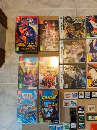Colección de videojuegos para Nintendo Switch, Nintendo 3DS y Game Boy Advance. - Pokémon Escarlata y Púrpura Edición Dual con Steelbooks (Switch) - Pokémon Escudo (Switch) - Spyro Reignited Trilogy (Switch) - Crash Team Racing Nitro-Fueled (Switch) - Crash Bandicoot N. Sane Trilogy (Switch) - Pokémon Platino (DS) - Pokémon Perla (DS) - Pokémon Lunar (3DS) - Pokémon Ultrasol (3DS) - Star Wars Lethal Alliance (DS) - FIFA 06 (DS) - Yu-Gi-Oh! The Sacred Cards (GBA) Los 5 juegos y el cartucho de los eventos de la gba advance se venden todos juntos los 5 juegos son originales no son copias Acepto ofertas serias , no envíen ridiculeces