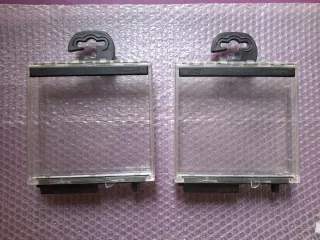 Conjunto de dos cajas de seguridad para juegos de Nintendo DS. Ideales para proteger tus juegos. - Diseño transparente. - Cierre seguro. - Incluye colgador. Cierres de seguridad como el de las tiendas, son de la epoca. Las 2 unidades a 50 mas envio certificado.