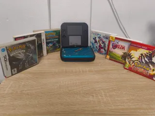 Consola Nintendo 2DS en color negro y azul, junto con seis videojuegos. Funciona perfectamente. Sin cubre joycon (se gastó). Al sacar un juego cuesta un poco y tienes que tirar para arriba, es posible que la ranura necesite una limpieza. Incluye funda (gastada) de flrma gratuita y dos lápices táctiles. Puedes comprar el pack entero o cada pieza individual. Incluye: -Nintendo 2DS + funda: 55€ - Pokémon Diamante: 32€ (VENDIDO) - Pokémon Exploradores del Tiempo: 30€ (vendido - Pokémon Rubí Omega: 35€ (VENDIDO) - The Legend of Zelda: Ocarina of Time 3D: 22€ (VENDIDO) - Kingdom Hearts 3D: Dream Drop Distance: 22€ - Metal Gear Soli