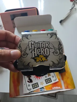 Juego para Nintendo DS Guitar Hero On Tour. Con las pegatinas originales sin pegar. La caja esta un poco rota de ahí su precio - Incluye juego, accesorio Guitar Grip y correa ajustable. - Contenido completamente en castellano.