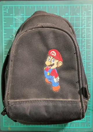 Estuche oficial de Nintendo para Nintendo DS con un diseño de Mario. - Color negro. - Cierre de cremallera.