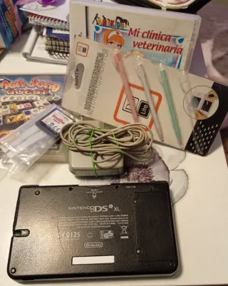 Consola portátil Nintendo DS XL en color verde con cargador y tres juegos. - Juego incluido: Mah Jong Quest Edition. - Juego incluido: Mi clínica veterinaria (Amikids). - Juego incluido: Magic Brus. - Incluye lápiz táctil para Nintendo DS Lite/DSi/DSi XL.
