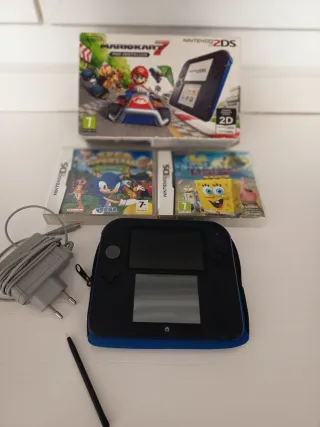 Nintendo 2DS con cargador, lápiz, funda protectora y tarjeta SD con los siguientes juegos 🎮: - Mario kart 7 - New Super Mario Bros 2 - Mario & Luigi Paper Jam Bros - Mario party Island Tour - Animal Crossing New Leaf - Super Mario 3D Land - Pokémon amarillo - Pokémon cristal - Pokémon Rojo Fuego - Pokémon Verde Hoja - Pokémon Esmeralda - Pokémon Zafiro - Pokémon Rubí - Zelda 2, etc... ✅ La nintendo funciona perfectamente y estéticamente tal como se muestra en las imágenes. ¡Si tienes alguna duda pregunta sin compromiso!