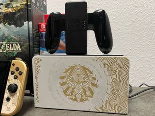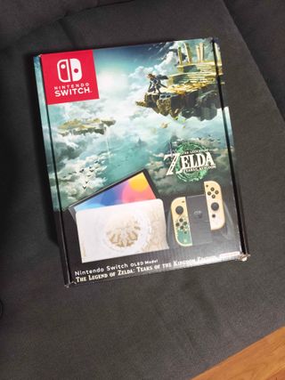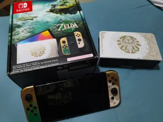 Consola Nintendo Switch OLED edición coleccionista The Legend of Zelda: Tears of the Kingdom Incluye caja y accesorios originales, siendo estos: - Tablet OLED - Joycons - Correa para los joycons - Mando para los joycons - Dock de carga y conexión a TV - Cable HDMI - Cable de alimentación Además se incluye un cristal templado en la pantalla de la tablet y una tarjeta micro-SD de 256GB de SanDisk La consola está hechizada y se vende formateada y lista para usar, el motivo de la venta es el nulo uso que se le da, para más información mándame un privado