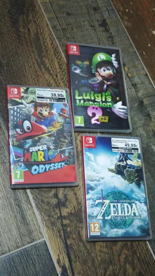 Hola!! Vendo este lote de juegos que tanto si eres nuevo o avanzado en el mundo de Nintendo Switch vas a amar! Contenido del lote: - The Legend Of Zelda Breath Of The Wild + Caja (Separado: 45€) - Mario Kart 8 Deluxe + Caja (Separado: 45€) - Pokemon Mystery Dungeon: Equipo de Seguros + Caja: (Separado 45€) - Grand Theft Auto: The Trilogy (Separado: 30€) - Rayman Leyends: Definitive Edition (Separado: 15€) - Pokemon Espada, 2 cartuchos (Separado: 25€ 1 ud.) Personalmente, el que más me gustó jugar fue el The Legend Of Zelda porque nunca lo había jugado, pero su historia y su mundo abierto te meten de lleno en horas y horas de juego!