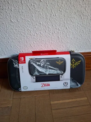 Funda NUEVA sin quitar los precintos para Nintendo Switch, Switch Lite y Switch OLED. Marca PowerA edición Zelda. Licencia oficial Nintendo. Tiene hueco para meter 10 juegos y mantenerlos seguros sin que se muevan. También tiene un apoyo para poder apoyar y mantener inclinada la consola. Es nueva, está perfecta como se puede ver en las fotos.
