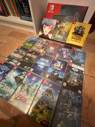 Se vende lote de Nintendo Switch compuesto por: - Consola completa con caja y manuales. - 10 juegos precintados (Gris Collector Edition*, Tunic, Zelda Breath of the Wild, Super Mario 3d All stars, Celeste, Ori and the Will of Wisps, Little Nightmares 2, Hogwarts Legacy, Dredge, Endling) - 8 juegos completos (Tomb Raider Deluxe Edition, Ori and the Blind Forest, Little Nightmares, Hollow Knight, Zelda Tears of The Kingdom, Zelda Skyward Sword + caja especial, Zelda Links Awakening). Escucho ofertas por el lote y doy preferencia a la venta del lote completo o gran parte de él.