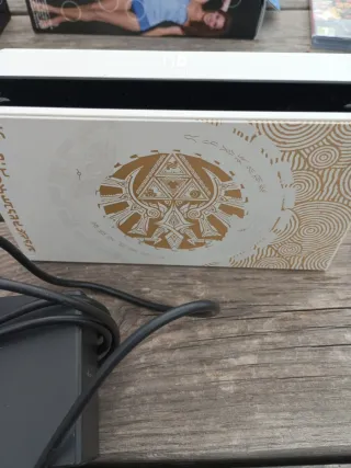 Base de carga para Nintendo Switch OLED. Diseño blanco con detalles dorados. - Incluye cable de corriente. Tiene dibujos que representan a la saga de Zelda También es válido para la Nintendo switch normal Muchas gracias