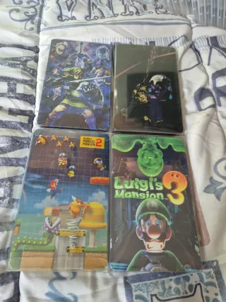 Pack de 4 steelbooks para Nintendo Switch. - Steelbook de The Legend of Zelda: skyward sword - Steelbook bayonetta - Steelbook de Super Mario Maker 2. - Steelbook de Luigi's Mansion 3.
