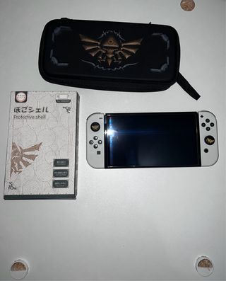 Nintendo Switch OLED con Funda protectora diseño inspirado en The Legend of Zelda. Incluye protector de pantalla. preguntar cualquier duda giño giño