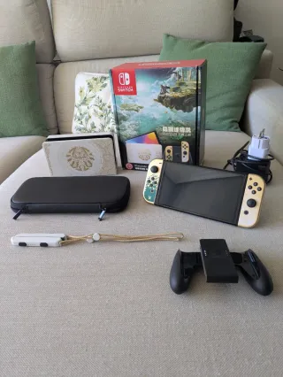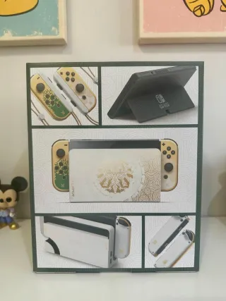 Consola Nintendo Switch OLED edición coleccionista The Legend of Zelda: Tears of the Kingdom Incluye caja y accesorios originales, siendo estos: - Tablet OLED - Joycons - Correa para los joycons - Mando para los joycons - Dock de carga y conexión a TV - Cable HDMI - Cable de alimentación Además se incluye un cristal templado en la pantalla de la tablet y una tarjeta micro-SD de 256GB de SanDisk La consola está hechizada y se vende formateada y lista para usar, el motivo de la venta es el nulo uso que se le da, para más información mándame un privado