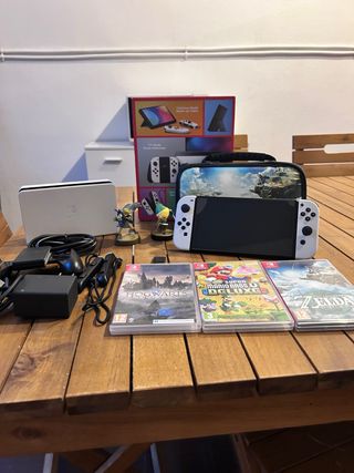 Consola Nintendo Switch OLED en color blanco apenas usada.... con todos sus accesorios y caja, con dos juegos de Zelda incluidos y una funda para el trasporte - Juego: The Legend of Zelda: Breath of the Wild - Juego: The Legend of Zelda: Tears of the Kingdom