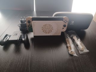 Nintendo Switch OLED edición limitada de Zelda: Tears of the Kingdom. Consola impecable, solo 3 h de uso, siempre guardada en su caja. Incluye base, Joy-Cons originales, correas, soporte, caja original, funda oficial de Nintendo y protector de pantalla puesto desde el primer día. No incluye el cable HDMI, se extravió, pero todo lo demás está completo. Estado como nuevo, perfecta para coleccionistas o para quien quiera una edición especial en condiciones excelentes y a mejor precio que en una tienda. Entrega preferiblemente en mano en Murcia. Se puede ver y comprobar sin compromiso. Se puede negociar. Se puede negociar ligeramente