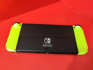 Consola Nintendo Switch modelo OLED 64gb con mandos color amarillo fluorescente. Buen estado general, con algunas marcas de uso, incluye cargador original y cable TV compatible, 1 año de garantía. **CASH & LOAN** Tienda de productos de segunda mano, reacondicionados y outlet de confianza en C/ San Ildefonso 12, Alcalá de Henares, Madrid. PRODUCTOS GARANTIZADOS. **+Info 910107949**
