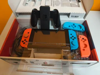 Consola Nintendo Switch en llamativos colores azul y rojo.Los mandos son compatibles,se compraron de repuesto y apenas se ha usado. - Incluye Joy-Con izquierdo rojo y Joy-Con derecho azul. - Pantalla táctil de alta definición. Incluye base de carga,cable de Alimentación eléctrica,cable HDMI para conexión con Monitor o TV.