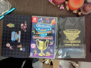 Edición especial del juego Nintendo World Championships para Nintendo Switch. Incluye juego, caja con pines y libro de pegatinas. Precio no negociable