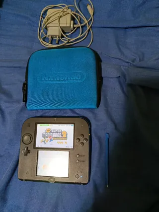 Consola portátil Nintendo 2DS en color negro, ideal para llevar a todas partes. Incluye accesorios para empezar a jugar. - Funda de transporte azul con logo de Nintendo. - Cargador de corriente. - Lápiz táctil. Incluye el juego de new super Mario Bros 2 preinstalado en la consola La consola está en buen estado funciona a la perfección, tiene alguna marca del uso pero inapreciable, la vendo por haberme pasado a Nintendo switch