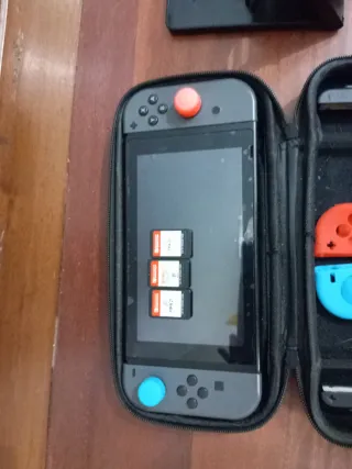 Consola Nintendo Switch con accesorios y el juego Super Mario Bros Wonder y estuche portable. Comprada en junio de 2025. Muy poco uso. Aún conservo la caja en la que venía. Todo funciona perfectamente, sin drift en los joy-cons. - Incluye base de carga. - Joy-Cons en azul y rojo. - Cable de carga USB-C. - HDMI oficial de Nintendo