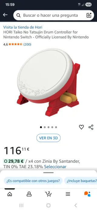 Controlador de tambor HORI Taiko No Tatsujin para Nintendo Switch. Diseñado para una experiencia de juego inmersiva. - Controlador oficial de Nintendo. - Diseño de tambor rojo y blanco. - Incluye baquetas. - Incluye juego Nintendo switch