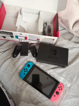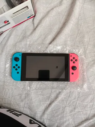 Consola Nintendo Switch con Joy-Cons en azul y rosa. - Incluye consola y mandos. - Diseño bicolor llamativo. Solo le falta el cargador que no sabemos dónde está por lo demás todo perfecto no a sido muy usada.