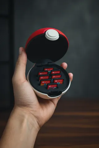 Práctico soporte con diseño de Poké Ball para almacenar tus cartuchos de Nintendo Switch. Ideal para tener tus juegos organizados y a mano. - Capacidad para 8 cartuchos. - Diseño inspirado en la icónica Poké Ball. - Compacto y fácil de transportar.