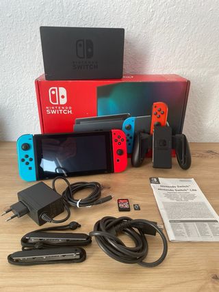 Consola Nintendo Switch con todos sus accesorios originales. - Incluye base de carga. - Dos pares de Joy-Con (rojo y azul). - Funda de transporte. - Cargador.