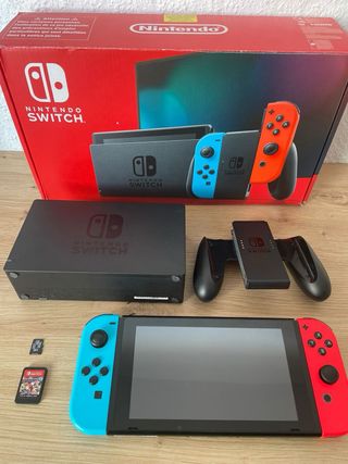 Consola Nintendo Switch en excelente estado, cuidada al detalle. La pantalla ha tenido protector desde el primer día, por lo que está como nueva. Funciona a la perfección y viene con todos los accesorios originales y la caja. - Joy-Con azul y naranja. - Joy-Con Grip. - Dock. - Adaptador de corriente. - Cable HDMI. - Correas Joy-Con Strap.